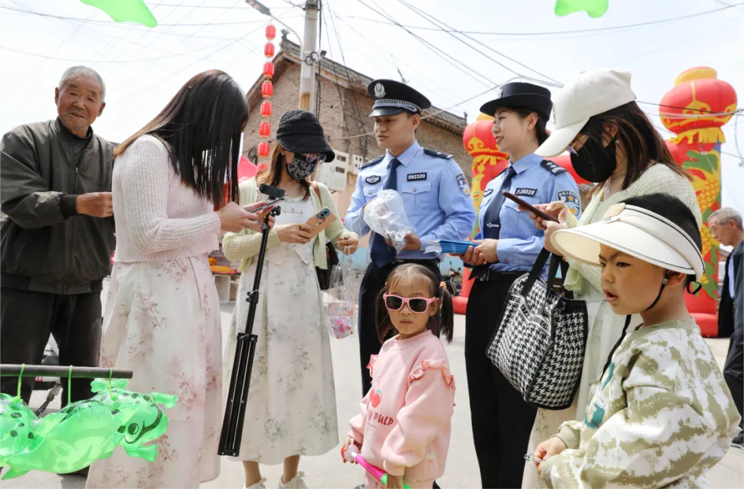 人间最美四月天,华山庙会邀您来。一年一度的绛县东华山第1373届古庙会吸引了诸多游客前来游玩。绛县公安局党委提前谋划、精准发力,自4月18日开幕起,组织卫庄派出所、巡特警大队、机关民警,联合巡逻防控,确保庙会秩序井然,同时巧借庙会有利时机,组织治安、反诈中心、卫庄派出所、宣教民警及专职网格员,深入东华山古庙会,在执勤巡逻的同时深入开展防范电信网络诈骗宣传活动。