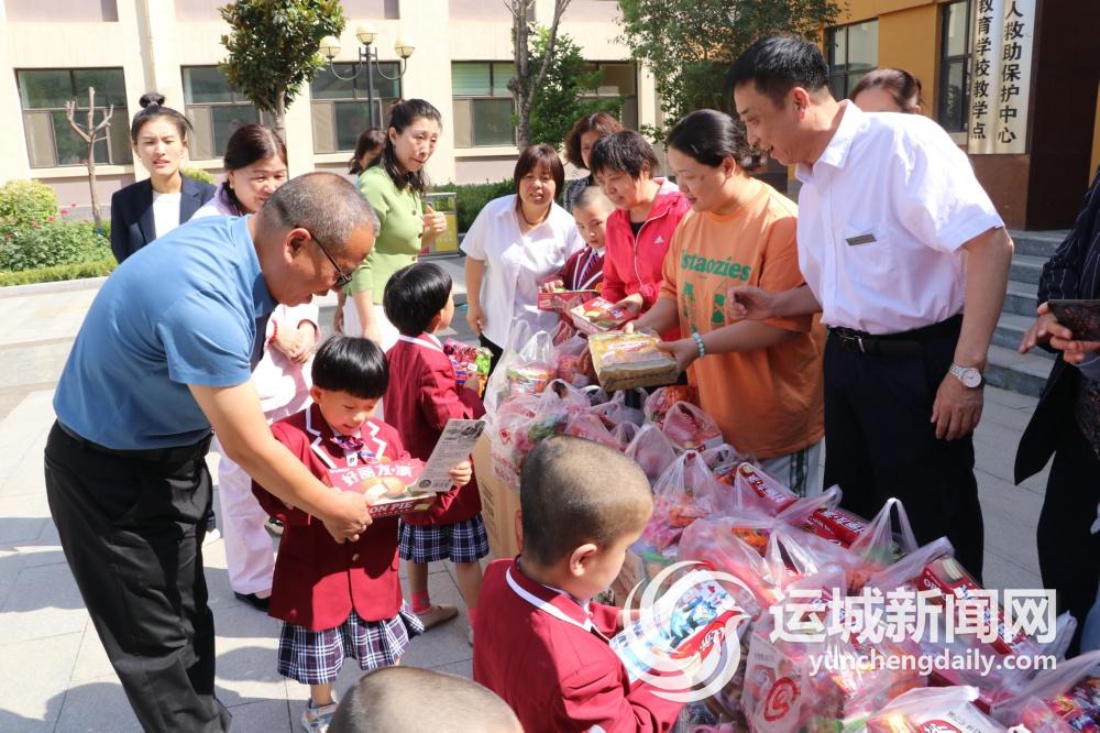 当日,在“六一”儿童节来临之际,运城购物中心优秀供货商给孩子们送上了食品、牛奶、文具、纸品等,价值1800余元,让他们感受到社会的温暖、享受到节日的快乐。