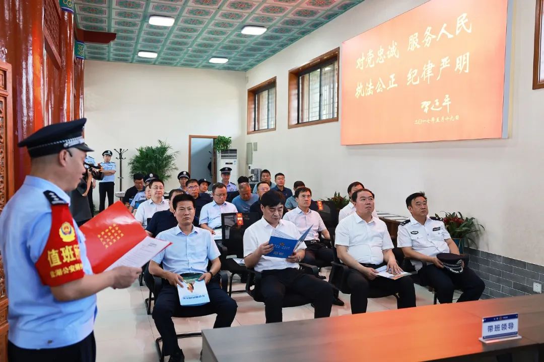 7月17日,市政协副主席、盐湖区委书记孙中全,在区委常委、政法委书记曹峰,区委常委、秘书长王波,运城关公文旅公司董事长董亚强,市局党委委员、副区长、分局党委书记、局长杨伟,副区长董学亮,运城关公文旅公司副总经理韩建宏陪同下,到盐湖公安分局解州派出所关帝庙警务室考察调研。分局在家党委班子成员参加调研。